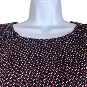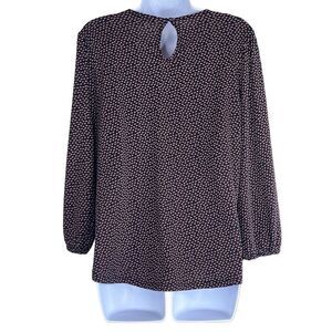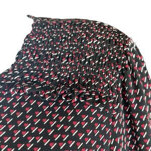 Adrianna Papell Heart Print Black Red Smocked Shoulder Blouse Medium Long Sleeve