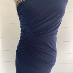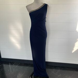 Adrianna Papell One-Shoulder Jersey Gown Navy Blue Sz 2