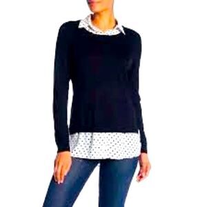 Stylish black sweater with a white polka dot layer. Perfect for casual outings.Size XL Approximately Measurement: Shoulder 17”/Pit 24”/Sleeve 26”/Length 31” Pre-owned Excellent Condition