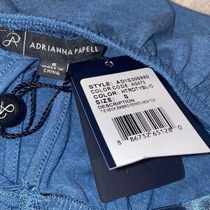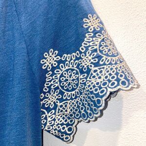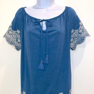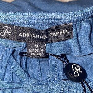 Adrianna Papell Tie Neck Embroidered Hem Top Blue