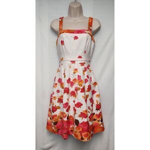 Adrianna Papell Women's Multicolor Floral Beige/Orange Fit-Flare Knee Dress Sz 6
