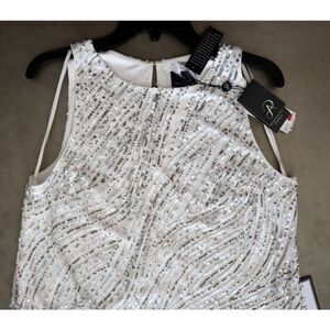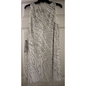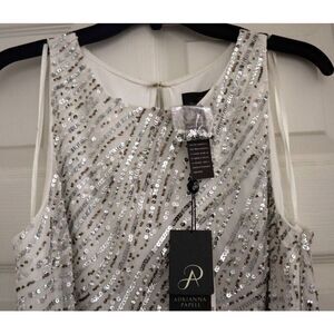 Adrianna Papell Women's Sz 14 Ivory Beaded Sequin Trapeze Lined Shift Dress