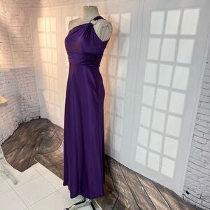 Adrianna Papell purple satin one shoulder rhinestone embellished gown size 4