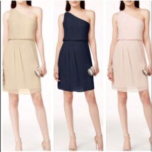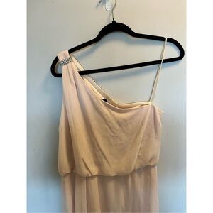Adrianna Papell rhinestone one shoulder blush chiffon dress size 12 new with tag