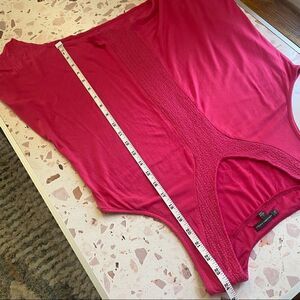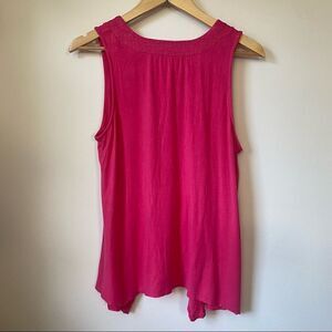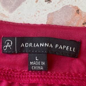 Adrianna Papell Diffusion Embroidered Panel Top Size Large. Bright vibrant pink, v-neckline and an asymmetrical hem. No rips, holes or stains! Viscose ~ Very soft fabric. Good preowned condition. No major flaws!