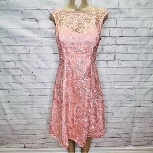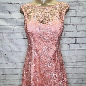 Adrianna Papell Embroidered Cocktail Dress size 2 in Champagne Rose