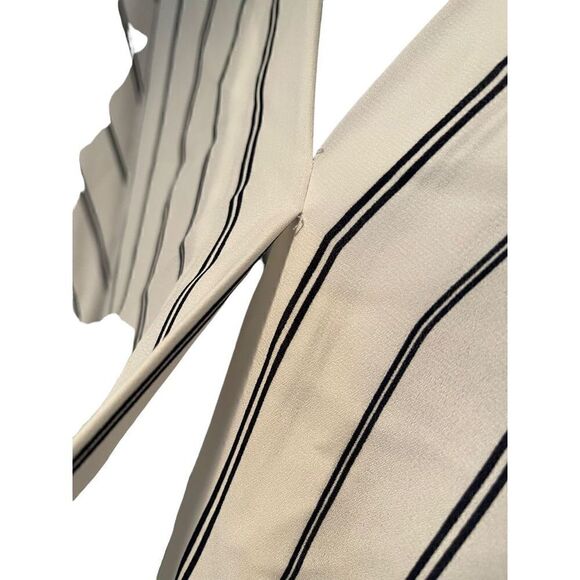 Beautiful top! Whitish-cream with black stripes. Size medium. Flattering style in the front. Excellent condition! Make me an offer! Please note: This item is USED. To the best of my ability I have examined the item and described it as best I can. Colors can vary from camera to camera. Buy at your own risk.