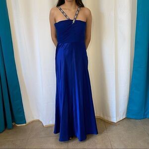 Adrianna Papell gorgeous blue gown with beaded straps. Sheath material down the back giving it an elegant look.