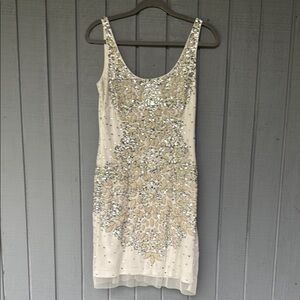 Adrianne Papell Elegant Cream Sequin Dress Size 8