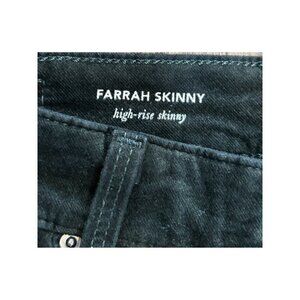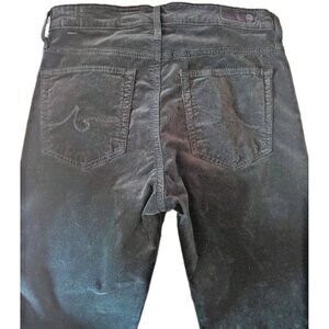 The product is a pair of women's AG Adriano Goldschmied Farah skinny jeans in a green velour fabric. These pants feature a sleek and slim-fitting leg style, perfect for a modern and stylish look. The green color adds a trendy touch to the outfit, while the high-quality fabric ensures durability and comfort. Ideal for casual or dressed-up occasions, these jeans are a versatile addition to any wardrobe.