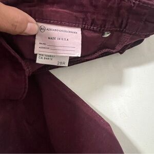 Adriano Goldschmidt Women’s 28R The Legging Super Skinny Corduroy Pants Plum EUC