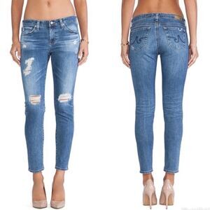 Adriano Goldschmied AG Stilt Cigarette Jean in 31R. The jeans are pre-owned and there are no stains. These are distressed jeans.