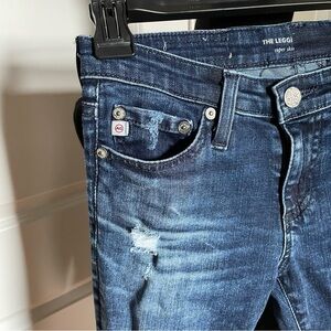 Adriano Goldshmied AG distressed blue denim jeans. These pants feature stretch denim fabric, super skinny fit.
