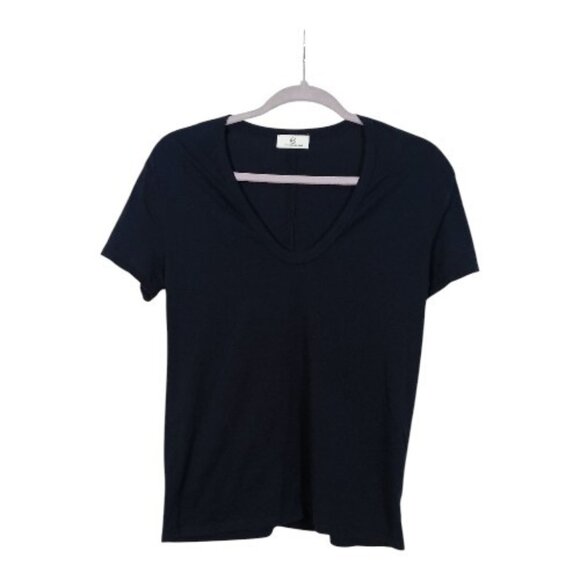 Crafted from 100% cotton in a solid navy blue color, this AG Adriano Goldschmied short sleeve t-shirt features a scoop neckline and a pullover closure for a classic and comfortable look. Perfect for casual occasions in the summer, fall, or spring, it offers a regular fit and is lightweight and breathable, making it a versatile and stylish addition to any woman's wardrobe. The designer brand ensures quality and a timeless appeal to this basic yet chic top.