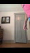 Medium blue stretchy jean-like material, super comfortable. Size 29R, fitted and Straightleg.