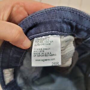 Stylish AG Contour 360 skinny jeans! Midrise in a dark wash with a super skinny leg. Gently worn and in great condition, size 26 regular.