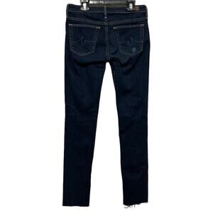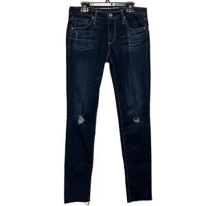 Adriano Goldschmied Distressed Dark Wash The Legging Ankle Jeans, excellent condition, distressed on both knees and one back pocket, tag states size 26R, measurements are approx 28 inch waist, 28 inch inseam