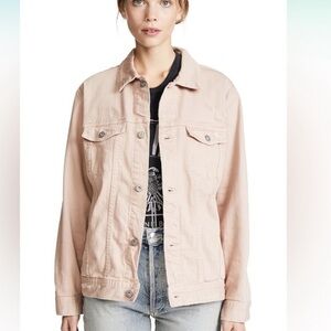 AG Adriano Goldschmied denim jacket distressed in weathered rosy rouge color.