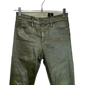 Adriano Goldschmied Farrah Faux Leather Skinny Ankle Coated Jeans Green 24R USA