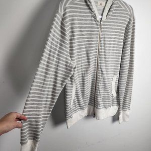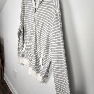 Adriano Goldschmied Gray and Cream Striped Zip Front Hoodie Size Large