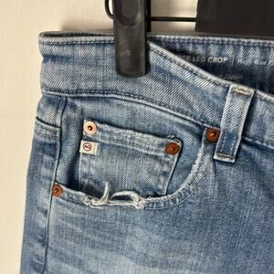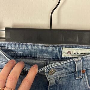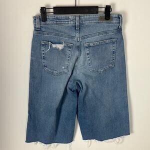 Used AG Adriano Goldschmied Ag-Ed Denim Shorts. These are a women’s 29. Listed as used because they have been cut into shorts. Originally were a wide leg crop full length jeans. Whoever cut them did a good job IMO. Bermuda short fit with about a 13” inseam. Lighter denim tone. Front and back pockets.