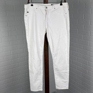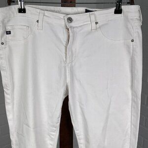 A perfect blend of comfort and style, these AG Adriano Goldschmied Jeans for women in size 32R offer a super skinny stretch fit in a solid white color.