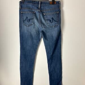 Gently Used AG Adriano Goldschmied The Premiere Jeans. These are a women's 27R. Medium denim tone throughout. Skinny straight fit. Front and back pockets. Made in USA.