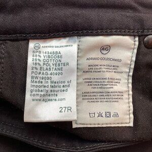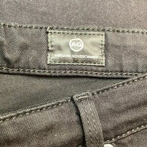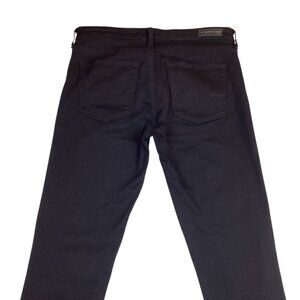 black jeans, AG jeans, Adriano Goldschmied, viscose blend jeans, cigarette leg jeans, women's jeans, mid-rise jeans, 27R jeans, casual wear, denim pants, designer jeans, black pants, made in Mexico