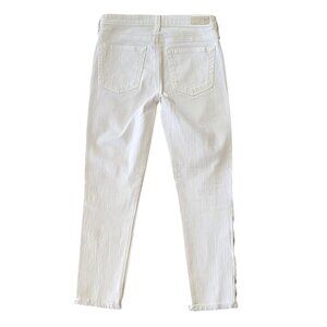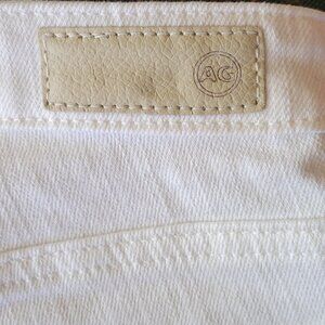 AG Adriano Goldschmied Mid-Rise Stilt Crop Cigarette Leg White Jean with Embroidered-Outseam