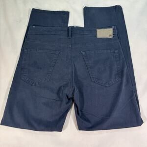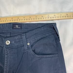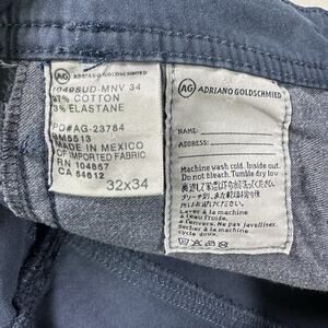 Upgrade your wardrobe with these navy blue AG Adriano Goldschmied pants in size 32X34. Made from a cotton blend material, these chino style pants feature a flat front and tapered leg for a regular fit. The zip and button closure ensure a secure fit while the stretch and pockets features make them perfect for travel, casual or workwear occasions.
