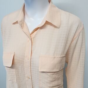 Adriano Goldschmied Sheer Button Front Blouse Size XS Peach Collared Lightweight