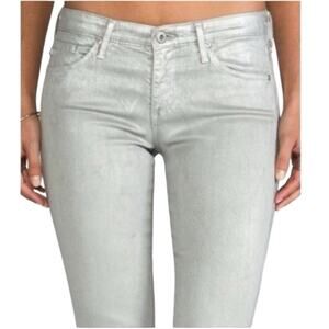 Adriano Goldschmied Silver Metallic Leggings 28R | Extreme Skinny Coated Jeans
