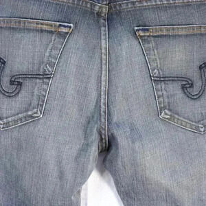 Elevate your denim game with these Adriano Goldschmied straight leg jeans in size 32. The light wash and solid pattern make them a versatile addition to your wardrobe, while the zip and button closure ensures a secure fit. The cotton blend material and denim fabric type make them comfortable and durable for everyday wear. Add a touch of preppy style with the 5-pocket design and AG Adriano Goldschmied logo accents. The mid-rise fit and stretch feature make them perfect for any season, whether it's winter, summer, fall, or spring. Ideal for any occasion, these jeans are a must-have for any fashion-forward woman.
