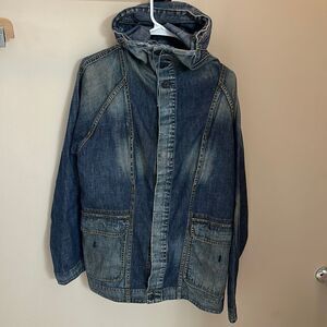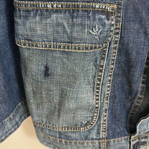 This has never been worn. The coloring and distressing is how it was made. It’s supposed to look vintage. I do believe this particular jacket is indeed an older design.