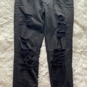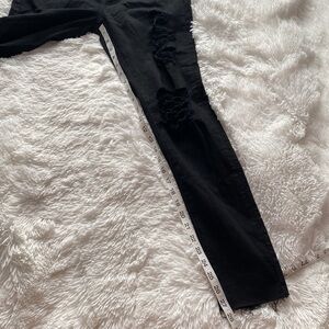 this black skinny jean features a destroyed finish with shredded holes at the front.