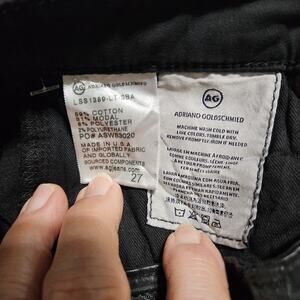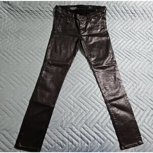 The Adriano Goldschmied The Legging Ankle Black Pants in size 27 are super skinny ankle pants designed for women. These pants feature a texture pattern, low rise, and a faux leather fabric made of polyester, polyurethane, cotton, and modal. With a zip and button closure, these machine washable pants offer stretch and have pockets for added convenience. Perfect for the winter, fall, and spring seasons, these AG Adriano Goldschmied pants are a stylish and versatile addition to any wardrobe.