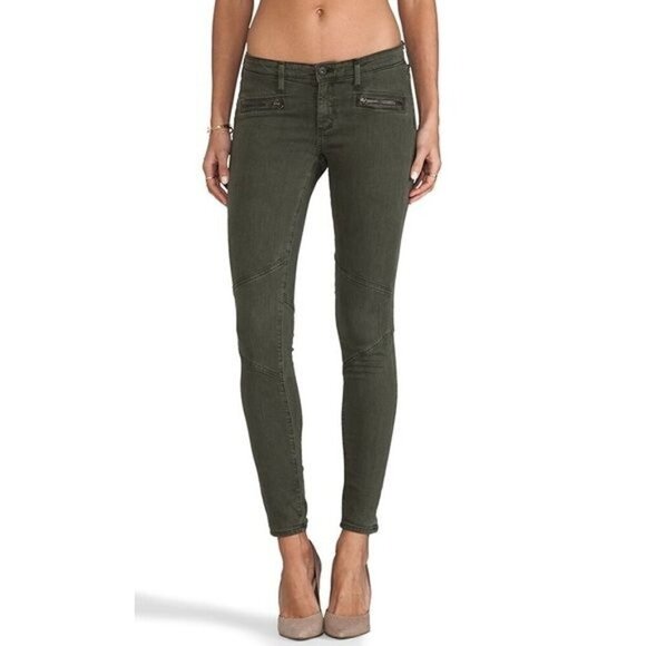 Adriano Goldschmied The Moto Legging Zipper Olive Green Jeans Size 24R 2