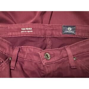 This sale is for one (1) pair of women's Adriano Goldschmied "The Prima" jeans., size 27. The jeans are burgundy in color and are mid-rise.