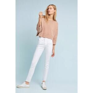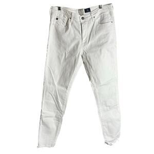 Adriano Goldschmied The Stevie Ankle Jeans in White. Size 29. Features mid-rise, zip fly with button closure, 5-pocket design, belt loops, slim straight leg, raw hem, and stretch denim. Style DSD1377LHWHT. 98% Cotton, 2% Polyurethane. Excellent pre-owned condition.