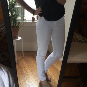 Bright-white denim shapes a pair of sophisticated skinny jeans that'll have you sailing into warmer weather.