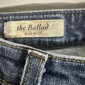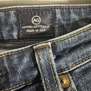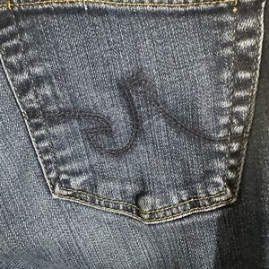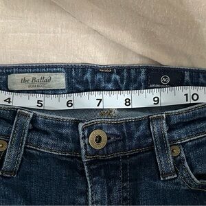 The Ballad style jeans by AG. Slim Bootcut jeans in EUC. Raw hem and distressed washed. Size 26r waist. Measurements in the photos. 13” waist 7” rise 27” inseam. Material content 70% cotton 28% lyocell 2% polyurethane. Smoke free pet friendly home. No flaws or stains seen.