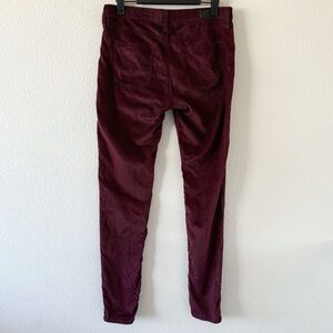 Red corduroy super skinny jeans from the brand Adriano Goldschmied. Has front and back pockets and a zipper fly front. Material has stretch to it. Comfy and perfect for casual wear.
