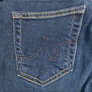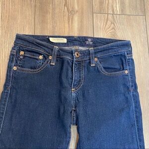 Soft distressing enhances the saturated blue wash of these figure-flattering stretch-denim jeans cut in a cropped ankle length.
