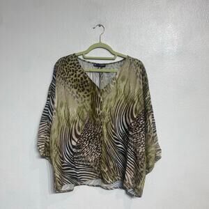 Adrienne Landau Animal Print Blouse Sz M NWT