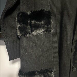 Adrienne Landau Black Cardigan with Faux Fur Accents