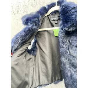 Adrienne Landau Collar Real Fur Rabbit Dyed Vest Jacket Blue Women's Size Small