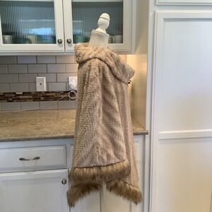 Adrienne Landau Cream Tan Faux Fur Poncho Size Large