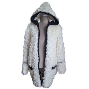 Adrienne Landau Faux Fur Hooded Coat Womens Sz L White Jacket Winter Teddy Coat