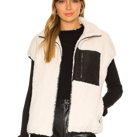 Adrienne Landau Faux Lamb Vest in Black & Off White shearling fleeve fur