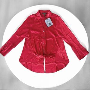 Adrienne Landau Flare Button Front Satin Top Size XS